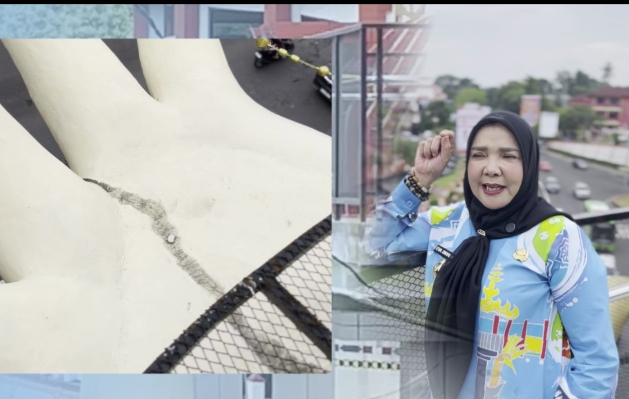 Altarnews.com (Bandar Lampung) – Walikota Bandar Lampung Eva Dwiana memastikan bahwa Ikon jari Jembatan Penyeberangan Orang (JPO) Siger Millenial retak adalah hoax. Hal itu disampaikan oleh Walikota Eva Dwiana saat melakukan pengecekan JPO. Kamis 14 Agustus 2025.